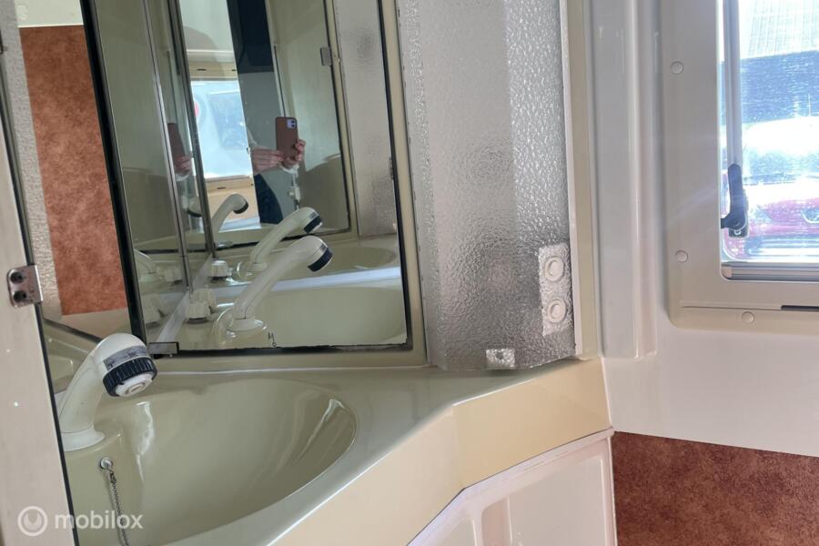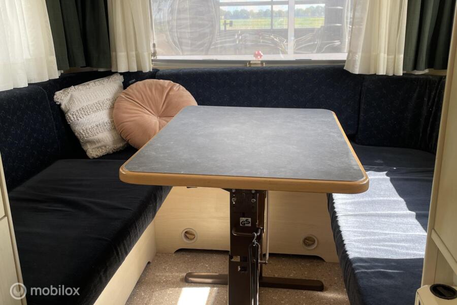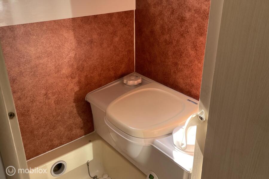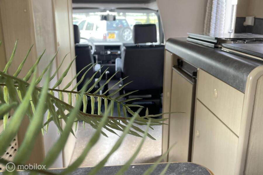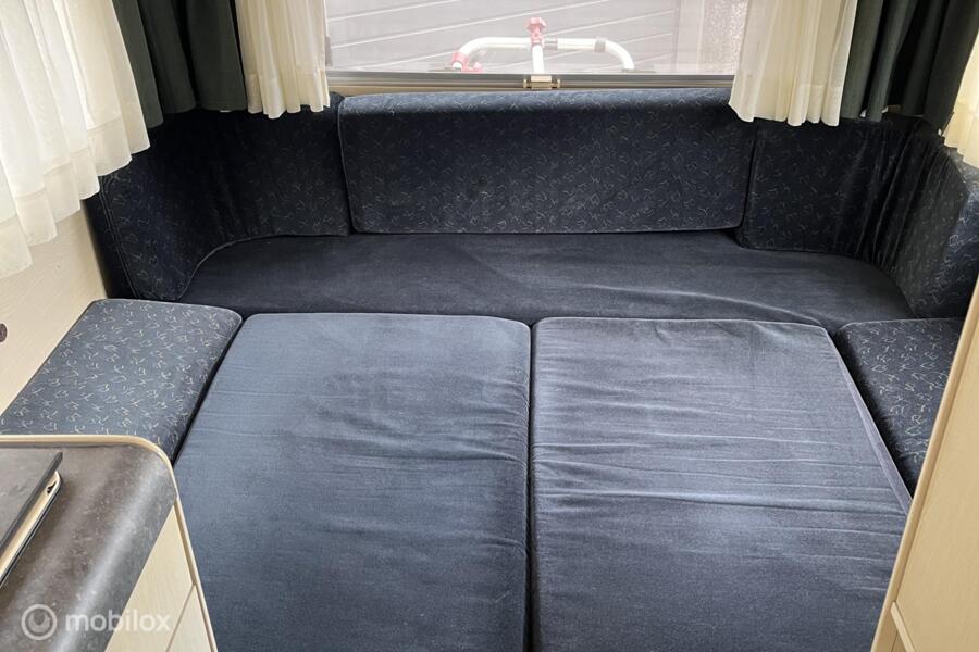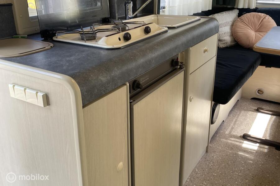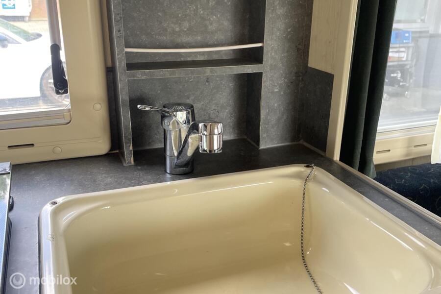 de cabine is uitgerust met een royale rondzit die makkelijk om te bouwen is tot een comfortabel tweepersoonsbed, een middenkeuken uitgerust met gasfornuis, spoelbak en koelvriescombinatie. Een toilet met ruimte om te douchen, Veel opbergruimte voor al je kampeeraccessoires en bagage. Ook is er een warmteboiler aanwezig.